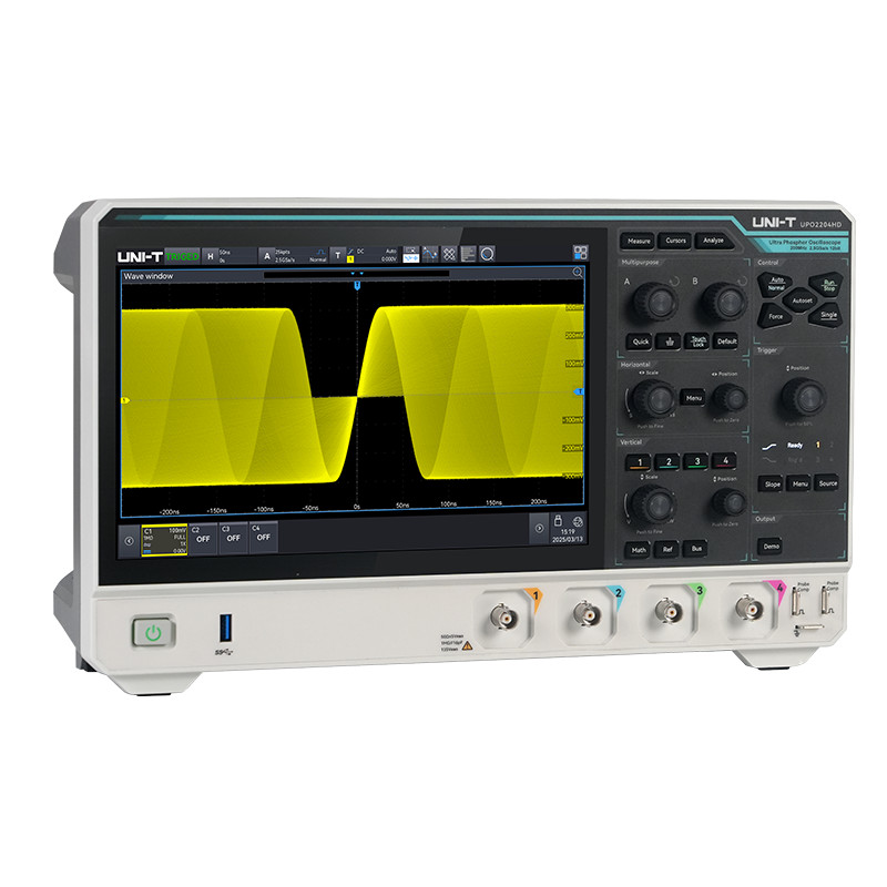 A UNI-T UPO2000HD sorozatú, nagy felbontású oszcilloszkóp típustól függően 70MHz-200MHz sávszélességet, 2 vagy 4 analóg csatornát és 2,5 GSa/s maximális mintavételi sebességet kínál, akár 100 Mpts memóriamélységgel. A sorozat a gyártó Ultra Phosphor 3.0 technológiáját használja, amely akár 1 000 000 wfms/s hullámforma-rögzítési sebességet biztosít 256 szintű szürkeárnyalatos hőtérkép-megjelenítéssel. Emellett innovatív digitális triggerrendszerrel rendelkezik, nagy triggerérzékenységgel és alacsony jitterrel.